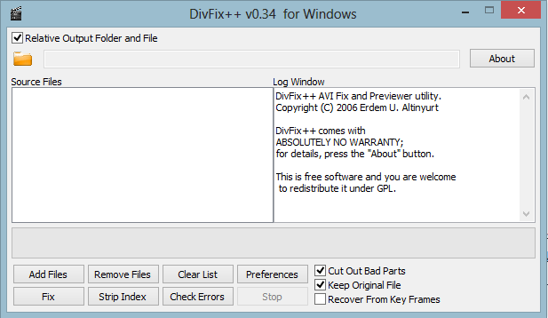 ++DivFix هو برنامج متخصص في تصليح ملفات avi المعطوبة، بعد تحميل البرنامج وتتبيثه قم بإضافة الملف المعطوب الى البرنامج عن طريق النقر على Add Files تم بعد ذلك انقر على